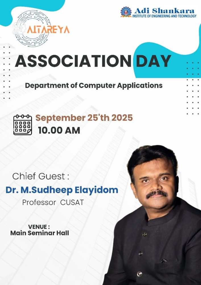 September 2025 | AITAREYA Inauguration | The MCA Association Inauguration and the logo launch of upcoming department Tech Fest was conducted successfully. The event was inaugurated by Dr. Sudheep Elayidom, Professor at CUSAT. During the inauguration, Dr. Sudeep highlighted the importance of professional growth and encouraged students to actively participate in academic and technical activities. |