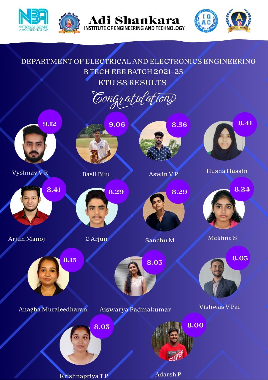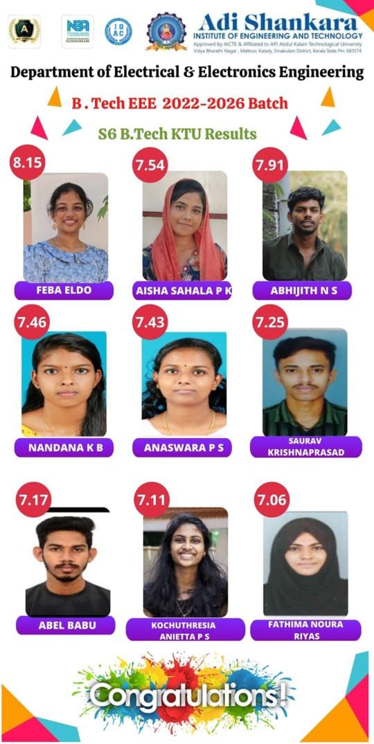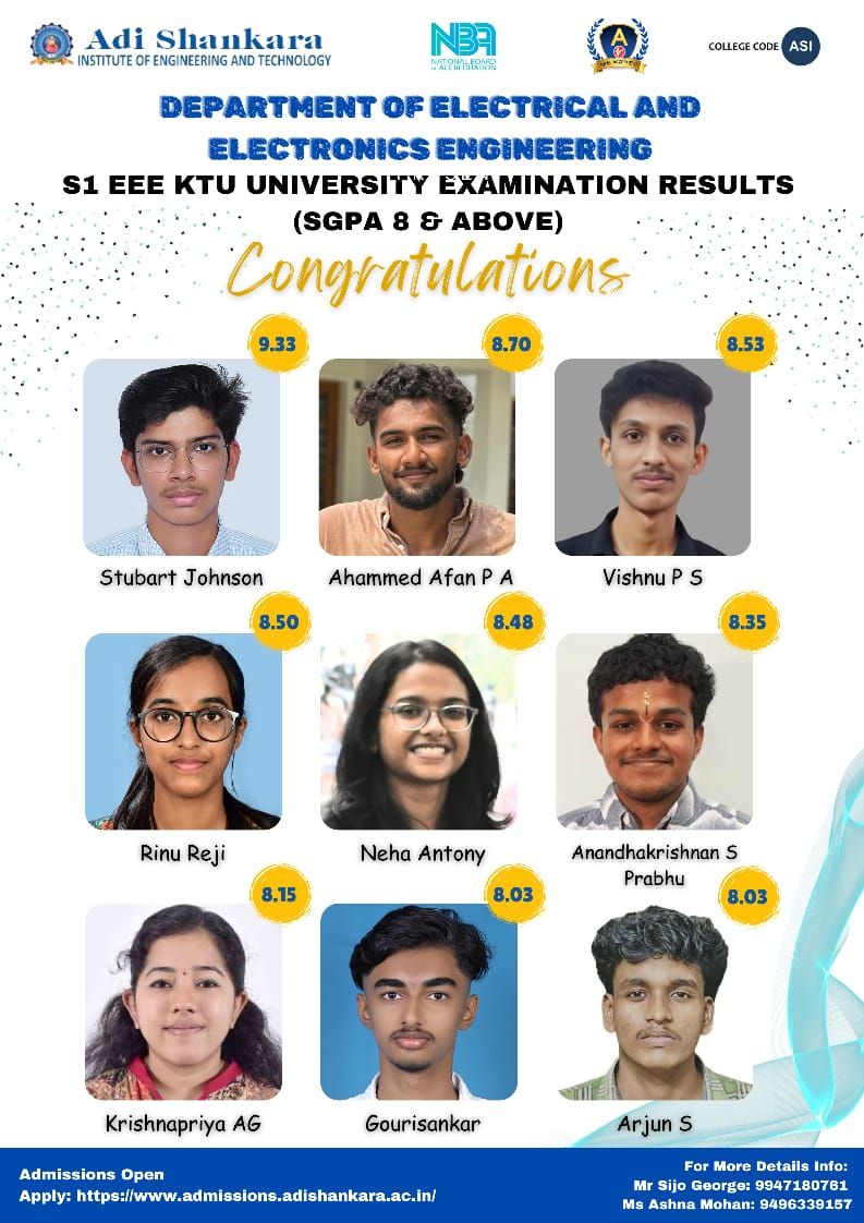 The Electrical and Electronics Department, established in 2001 and affiliated with Kerala Technological University, serves as a center of innovation and education in electrical engineering and electronic technologies. It offers a B.Tech program in Electrical and Electronics Engineering, M.Tech programs in Power Electronics and Power Systems as well as Ph.D programme. Recognized as an approved research center under KTU, the department seamlessly integrates theoretical knowledge with practical experience. With advanced laboratories, skilled faculty, and strong industry partnerships, we provide a vibrant environment for research and hands-on learning. Through pioneering projects, industry collaborations, active student clubs, and community outreach initiatives, we cultivate a culture of innovation and leadership, preparing students to thrive in their careers and make meaningful contributions to society.