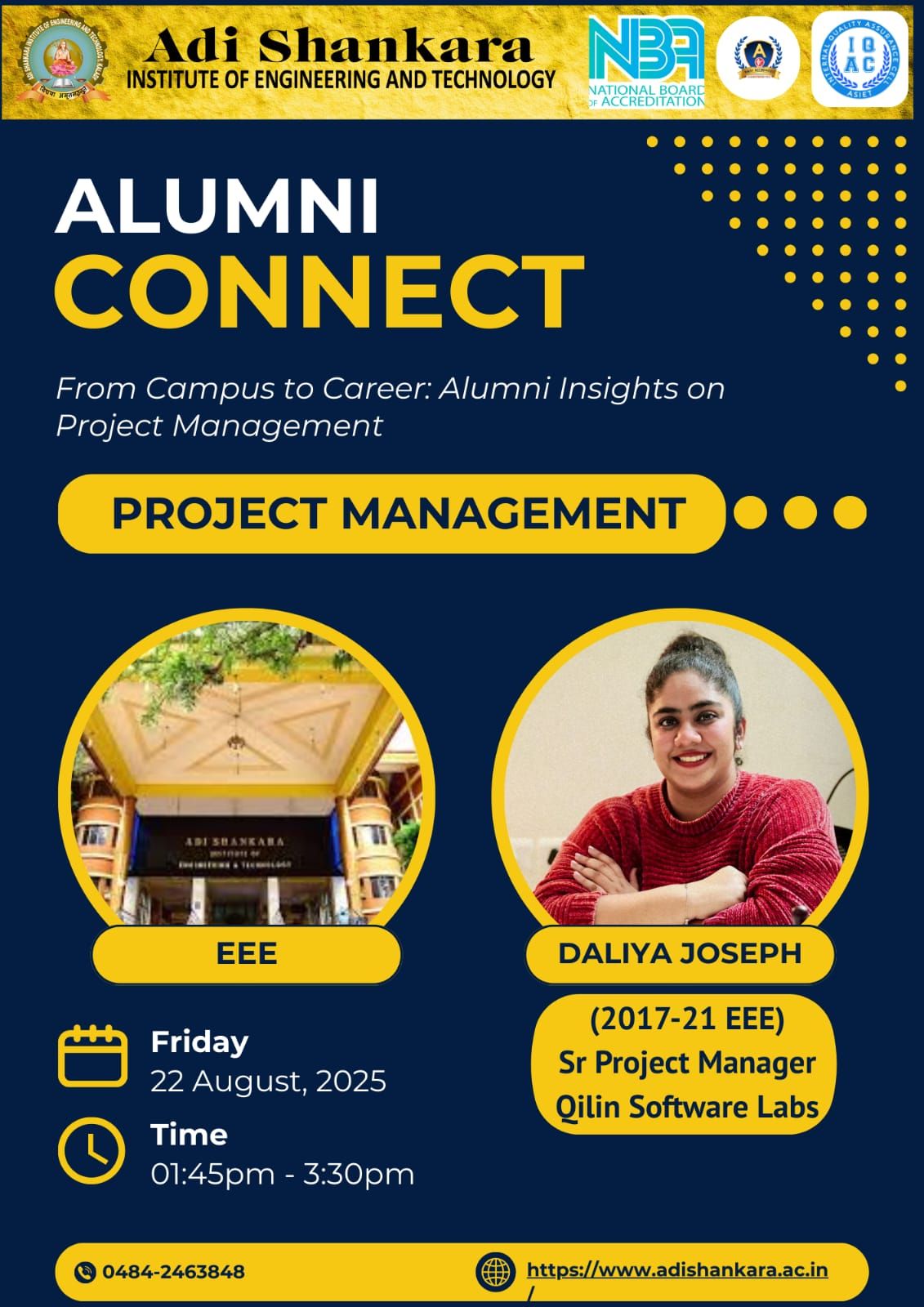 The EEE Department organized an Alumni Connect session on 22 August 2025 for S5 and S7 EEE students. The session was led by Ms.Daliya Joseph, an alumna from the 2017–21 EEE batch and Senior Project Manager at Qilin Software Labs. She shared her valuable insights on project management, bridging academic learning with industry practices and guided students on building essential skills for career growth |